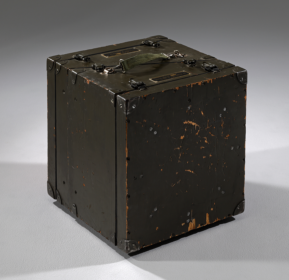 本機はフルレンジユニット搭載のヴィンテージ軍用可搬型スピーカーシステムです。銘板からは1950年代以後に米軍で使われたスピーカーと思われ、25cm口径のクアム・ニコルズ製シングルコーンフルレンジがマウントされています。