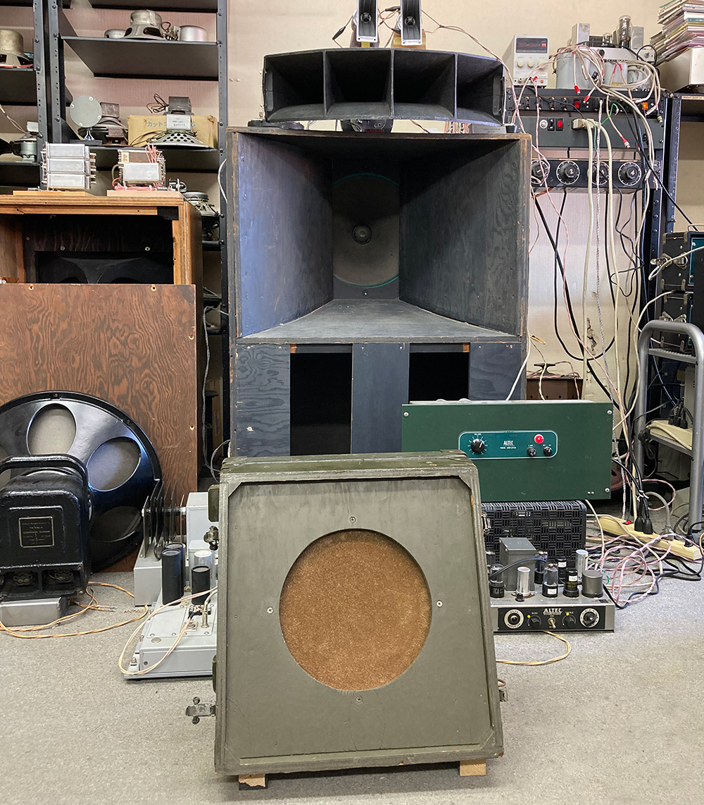『管球王国』118号の試聴取材では、6L6プッシュプル・モノーラルアンプのアルテック1520Tや、かつてセットで使われたと思われる軍用6V6プッシュプル・モノーラルアンプ(WEBSTER-CHICAGO CORP. SOUND REPRODUCER RP-104/UIH-2)、さらには安価なD級アンプによって密閉箱状態で鳴らし、いずれのアンプでも素直で心地いいフルレンジサウンドが得られました。ヴィンテージオーディオに深いノウハウを持つウエスタン サウンド インク(W.S.I.)の土井雄三氏が内部の側面下部に吸音材としてガーゼを留めてチューニングすると、中低域にエネルギーのあるアルテック1520Tとの組合せではヴォーカルの膨らみがわずかに抑えられて音のバランスがいっそう整いました。