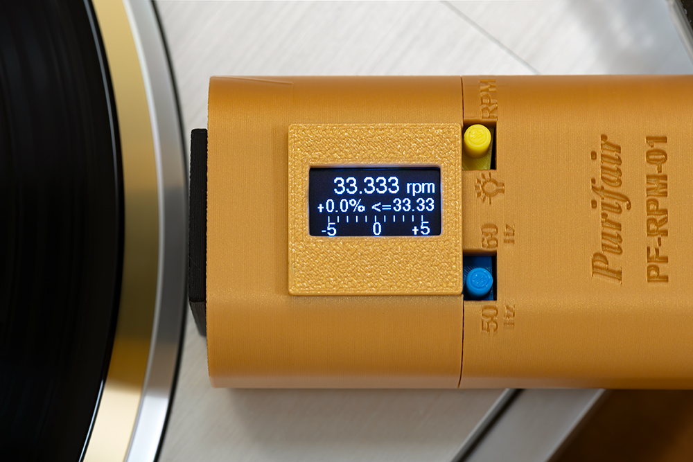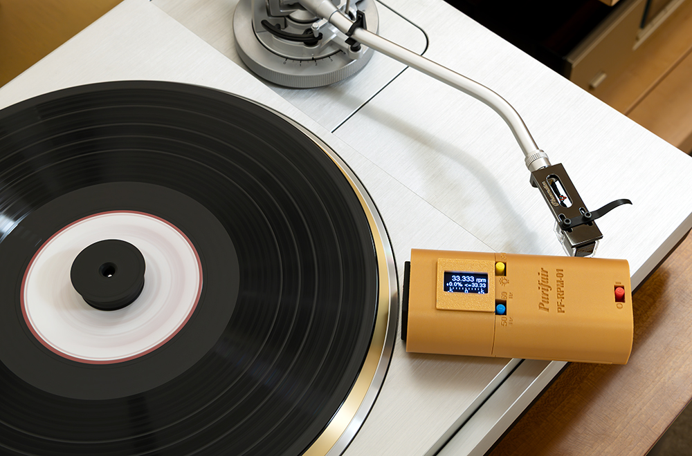 Purifairは、オーディオ愛好家であり記事執筆や機器設計とメインテナンスなど幅広く活動する薬師寺純平氏が立ち上げたブランドです。PF-RPM-01は、SP盤からLPまでアナログレコード再生を愛好する薬師寺氏が、レコードを可能な限り正しいピッチ、正しいテンポ感で聴く目的で製作したアナログプレーヤーの「回転数チェッカー」です。