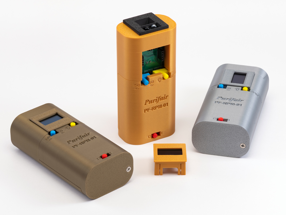 PF-RPM-01は写真のようにブロンズ/ゴールド/シルバー(左から右へ)の3色が用意されます。中央のゴールドはディスプレー表示部を抜いた状態で、表示部は左のブロンズと右のシルバーのようにセッティング時に視認しやすいよう向きを変えて装着することが可能です。