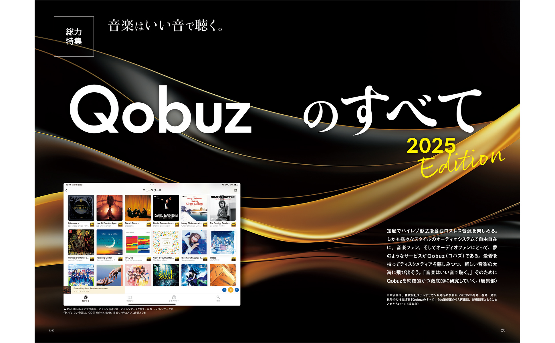 この別冊『Qobuzのすべて 2025 Edition』は、Qobuzのサービス概要から使用機器別の再生方法、対応オーディオ機器、どうやって高品位な再生を実現するのかなど、徹底的に解説した待望の一冊です。
