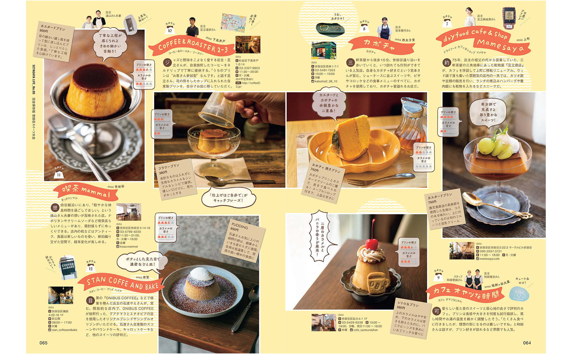 さらに、独特の引力を放つ喫茶店の甘いものにも注目します。愛しきレトロな魅力があふれ、どこか心がほっとする味わいを、東京喫茶店研究所の難波純子さんと一緒に紐解きます。人気の“カタウマなプリン”も一挙に集め、世田谷中の名品をギュッとお届け。