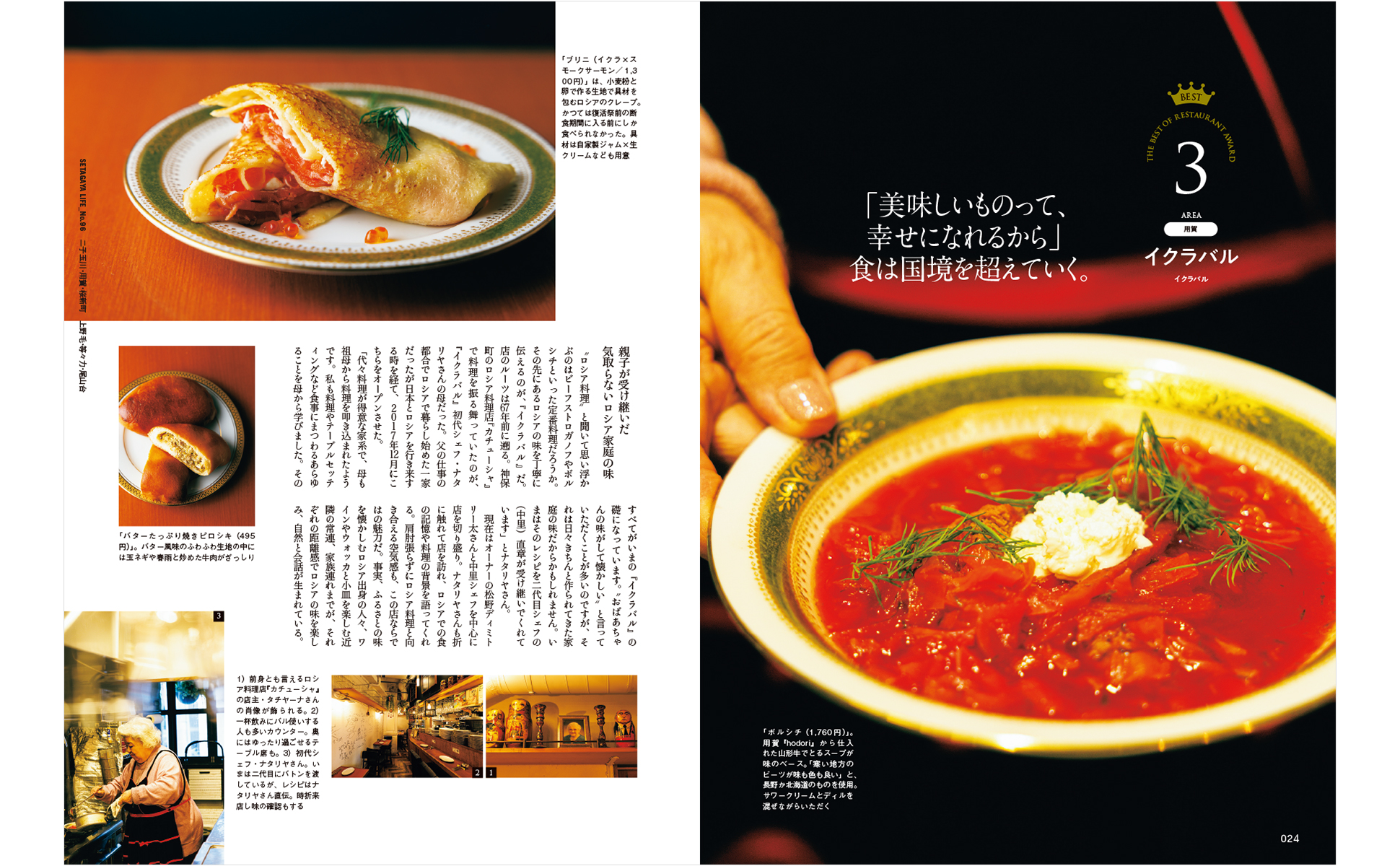 続いては、世田谷焼肉の現在地。異なる個性をもつ6店を徹底解剖し、世田谷焼肉のいまを探りました。ひとつの料理や食材に特化した専門店も魅力がたっぷり。このエリアでそれぞれ店を営む父子が語る、互いへの胸の内に迫る企画や、いい一日を始めるための朝ごはん企画も必読!